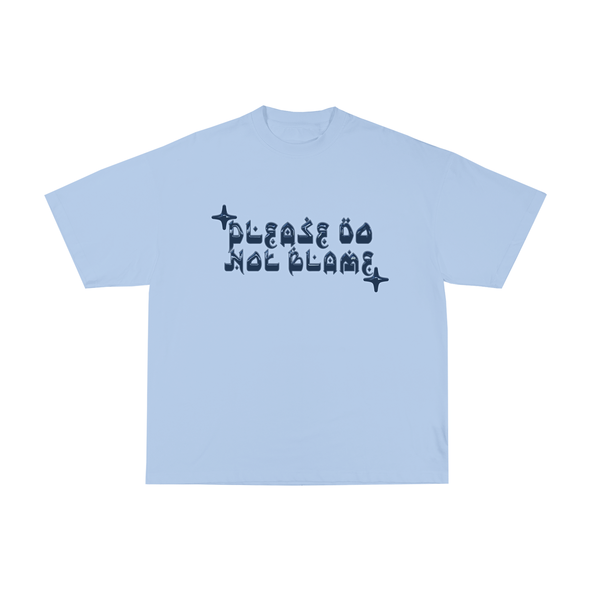 "Please do not blame" print on the front